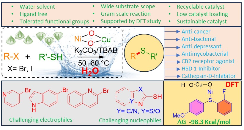 57. Amlan Swain, Bedabyas Behera, Saroj L Samal, Laxmidhar Rout* and Debendra K Mohapatra; CuNiO₂ Nano Catalyst for Efficient Csp²-S Bond Formation in Water: Toward Green Synthesis of Bioactive Molecules, Catal. Sci. Technol., 2026 : DOI https://doi.org/10.1039/D5CY01377A |