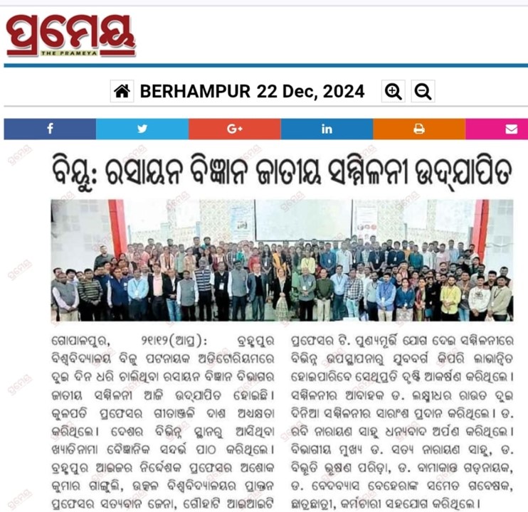 POST GRADUATE DEPARTMENT OF CHEMISTRY, BERHAMPUR UNIVERSITY, ODISHA-760007
