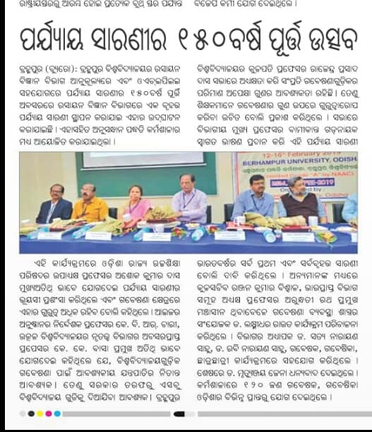 -in-Charge Berhampur University, of Berhampur University, at PG department of chemistry on 12th February 2019 |