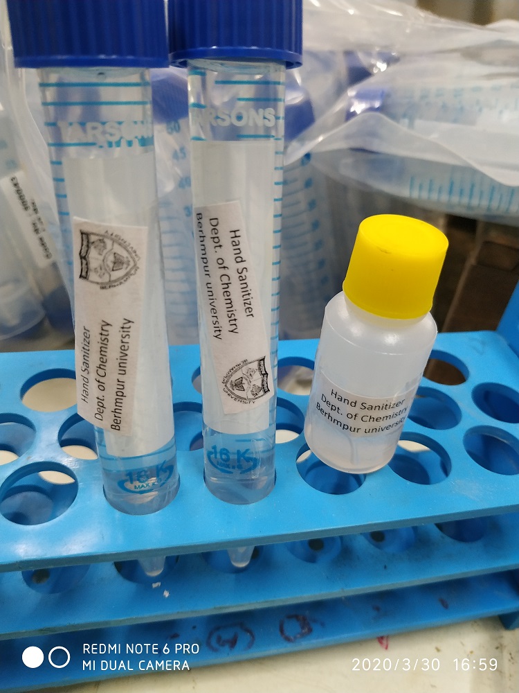 Preparation of SANITIZERS for Common people during lockdown period at PG Chemistry Berhampur University