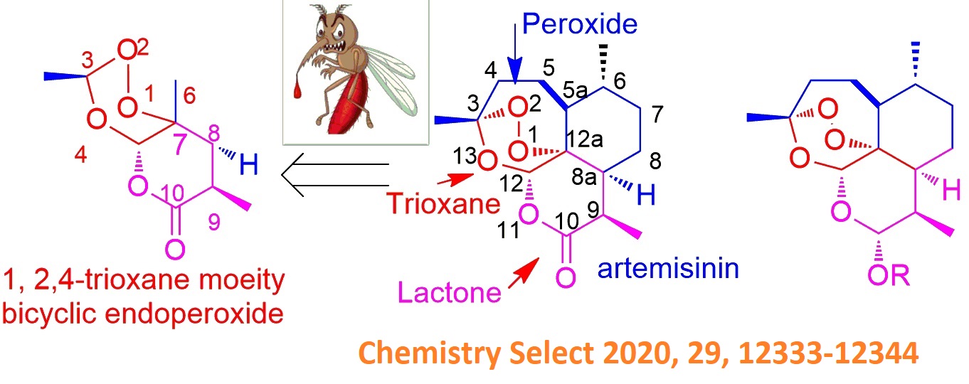 26. Strategy and Problems for Synthesis of Antimalaria Artemisinin (Qinghaosu); Santosh Kumar Sahu, Pradyota Kumar Behera, Prabhupada Choudhury, Subhalaxmi Panda and Laxmidhar Rout, Chemistry Select 2020, 29, 12333-12344; https://doi.org/10.1002/slct.202002885 (IF 2.3) |