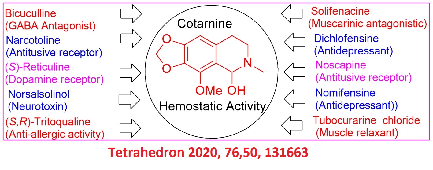 27. Developments in chemistry and biological application of cotarnine & its analogs, Sahu, S. K. Behera, P. K. Panda, S. Choudhury, P. and Rout, L. Tetrahedron 2020, 76,50, 131663. ; https://doi.org/10.1016/j.tet.2020.131663 (IF 2.8) |