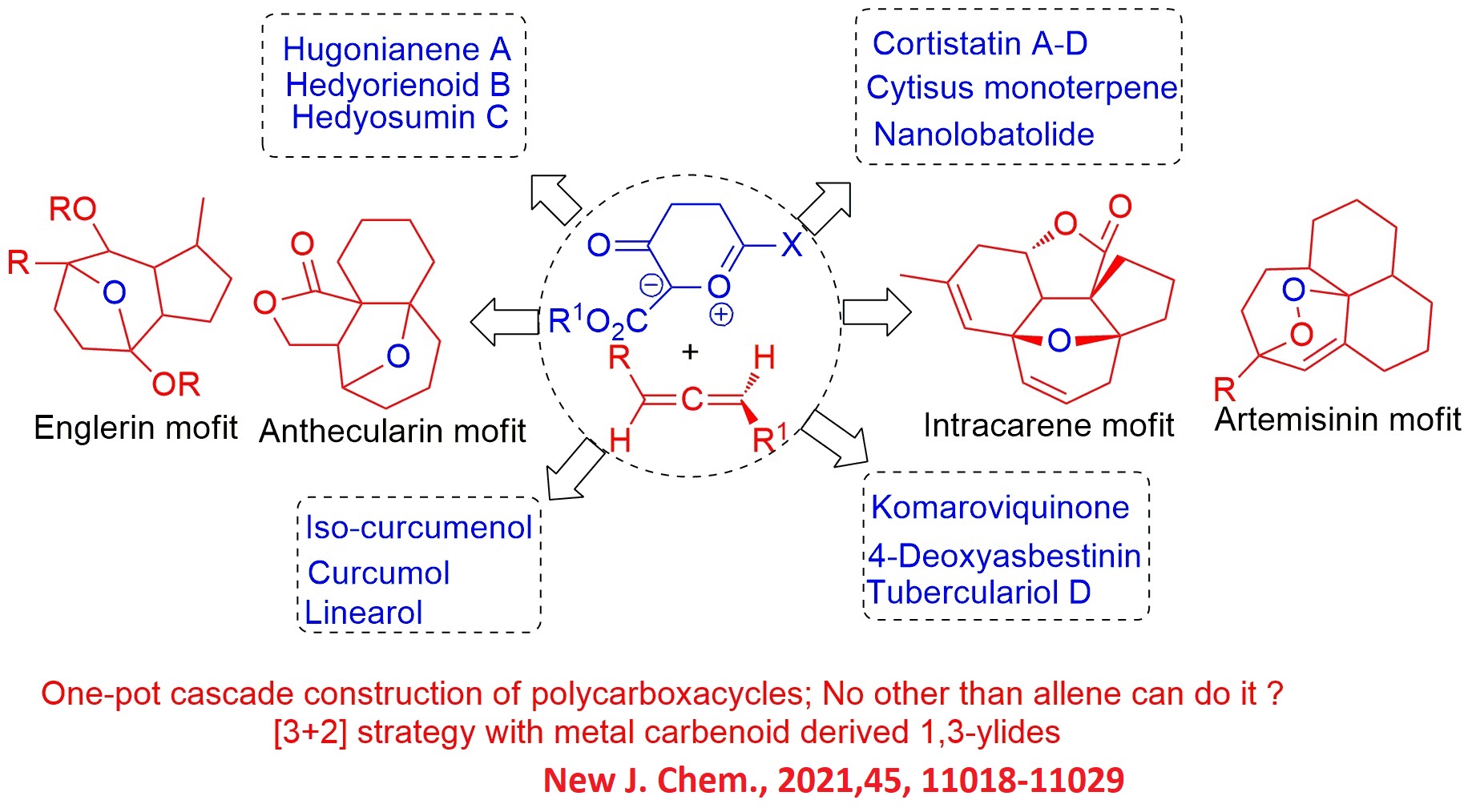 32. Recent advance in [3+2] cycloa ddition of allene with 1,3-carbonyl ylide; Rh(II) catalyzed access to bridged polyoxocarbocyles; S. K. Sahu, P. K. Behera, P. Choudhury, M. Sethi, S. Jena, and L. Rout, New. J. Chem, 2021, 45, 11018-11029; 10.1039/D1NJ02034J , (IF 3.6). |